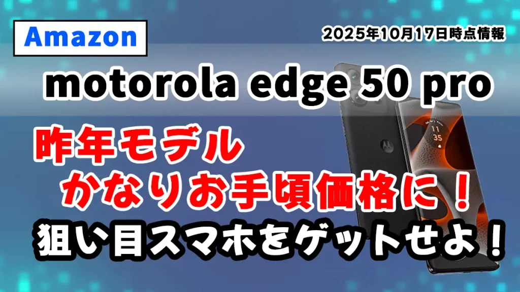 2025年10月17日 8:30 時点情報 ※閲覧タイミングによっては記事の情報が古い可能性があります。その場合は下記リンクから最新情報をご覧ください。 motorola edge 50 pro最新お得情報はこちら 昨年モデルが約4.8万円に!motorola edge 50 proがAmazonで値下... -