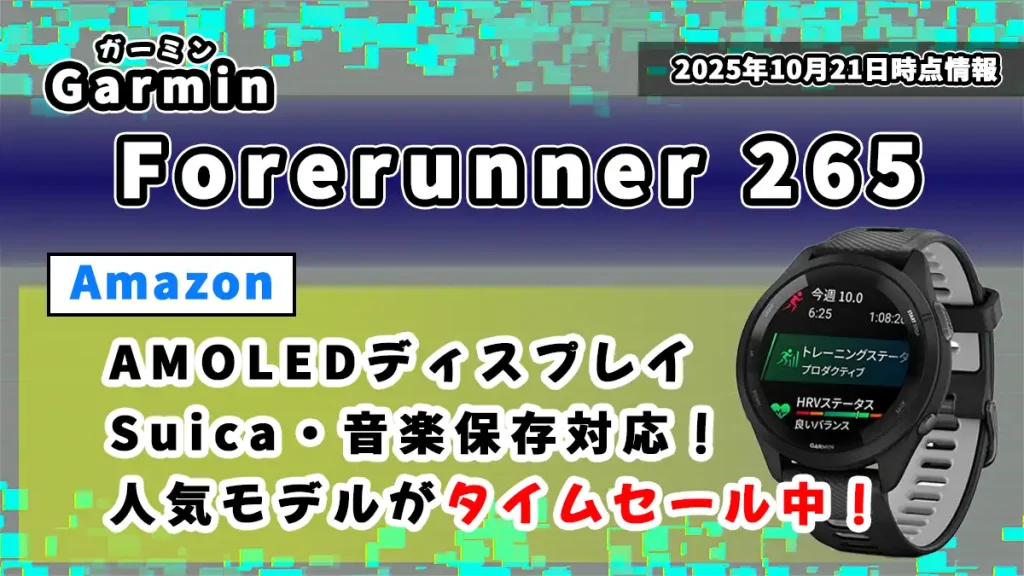 Amazonタイムセール中!GARMIN Forerunner 265が5,000円近くお得に―Suica対応&高精細AMOLED搭載ランニングウォッチ