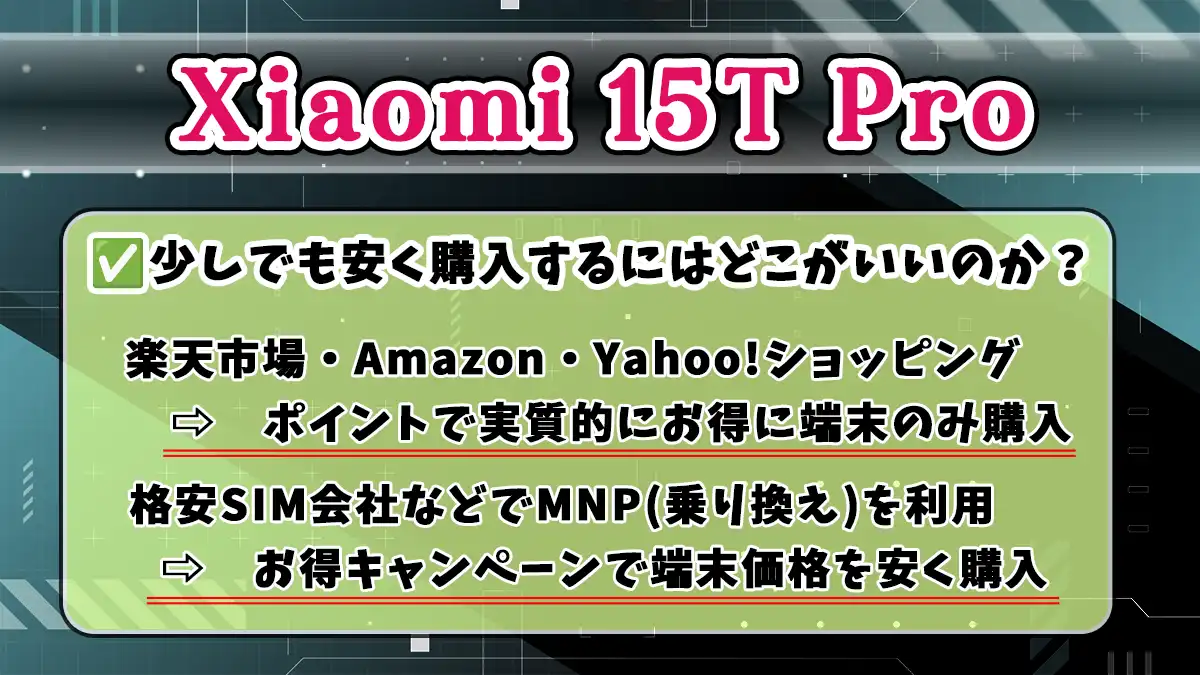 | 対象 | Xiaomi 15T Pro(12GB RAM/256GB、全カラー共通) |