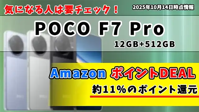 【AmazonポイントDEAL】でPOCO F7 Proが実質約67,800円!Snapdragon 8 Gen 3搭載スマホが楽天市場よりお得【2025年10月14日時点情報】